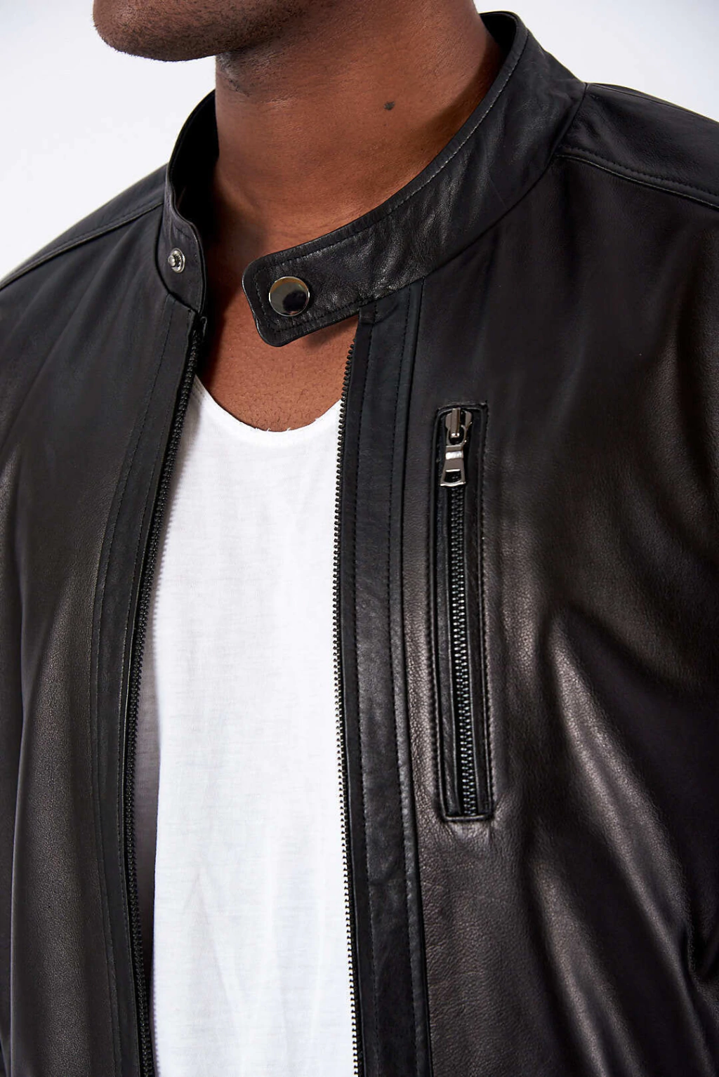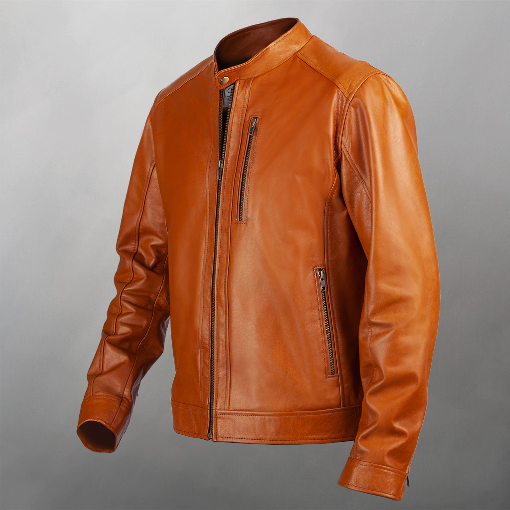 Chaqueta TATO / Cuero de Vaca Diseñada para quienes buscan elegancia y funcionalidad, esta chaqueta entallada cuenta con un cuello mao y un cierre delantero que realzan su estilo moderno. Dispone de 3 bolsillos externos y 1 interno, ideales para llevar lo esencial siempre a mano. Confeccionada en cuero vacuno de alta calidad, garantiza durabilidad y confort.